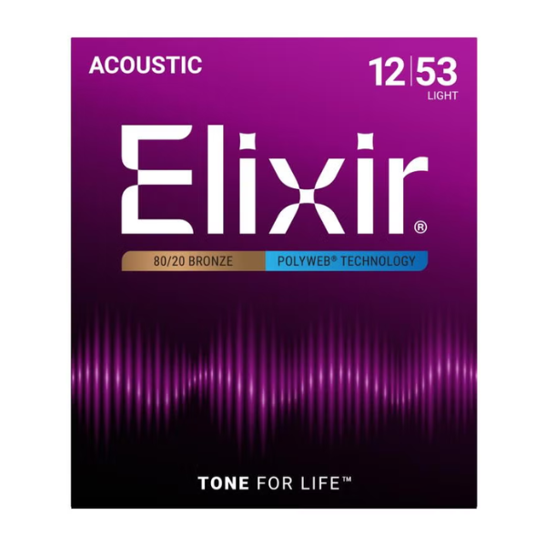 Elixir Polyweb Coated 80/20 Bronze Acoustic Guitar Strings 11025 Custom Light 11-52